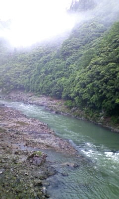 トロッコ列車は保津川の横?を走るので、保津川下りの舟が見れたんですね。